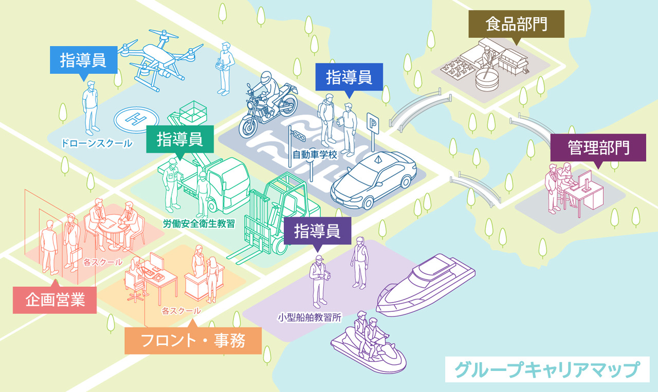 社内での成長、活躍のサポートとして、資格取得支援を行っています。免許取得や指導員資格の取得などを会社で支援し、キャリアアップを支えています。